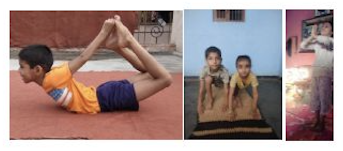Asanas were performed by students at their homes. The performances were shared online with fraternity.